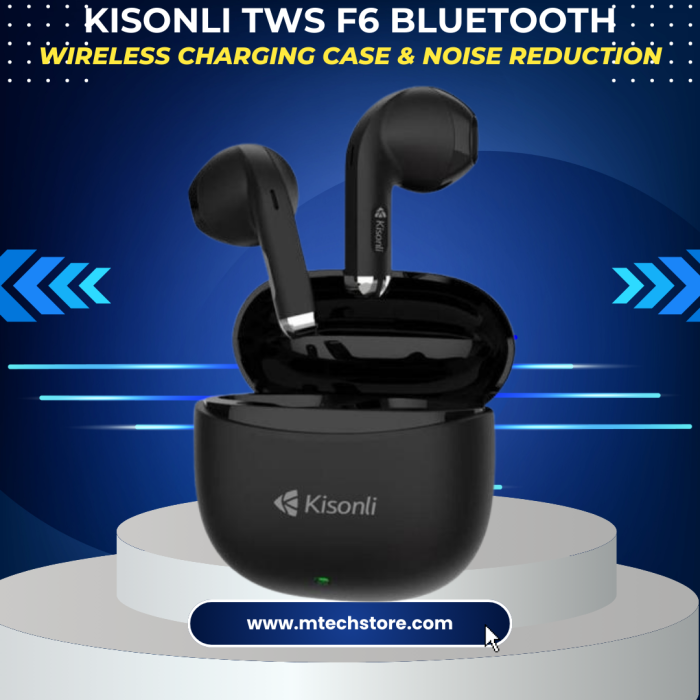 Upgrade your daily audio experience with Kisonli TWS F6 Bluetooth Earbuds, now available in Pakistan at MTechStore. Designed for style, comfort, and powerful performance, these earbuds are perfect for music lovers, gamers, and professionals who want clear sound on the go.